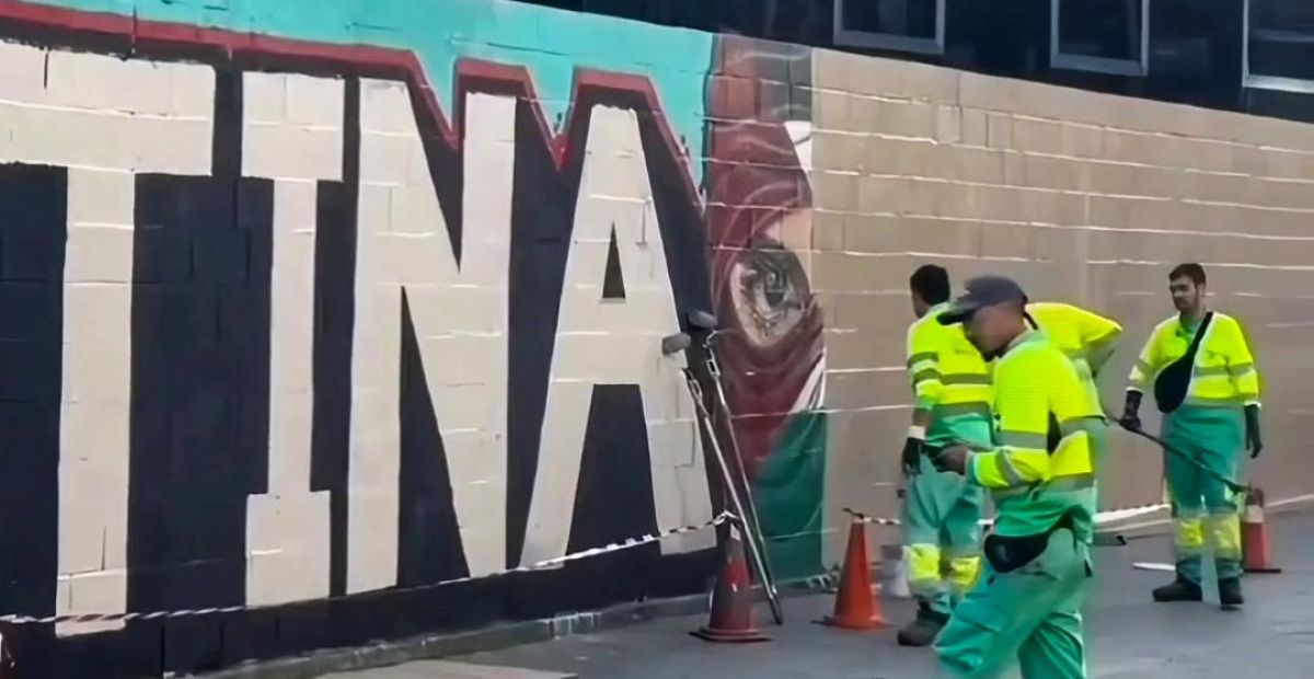 Ara bé, l’última renovació de missatges ha durat molt menys que cap altra i no ha estat per ser substituïda per nous murals per Palestina. En concret, els serveis de neteja han eliminat un mural que contenia frases més explícites contra l’estat sionista d’Israel: “Israel assassina, Europa patrocina”, “Tot el món detesta Israhell” o també “Death to the IOF” (“Mort a les forces d’ocupació israelianes”), en al·lusió a la frase de l’artista punk Bob Vylan viralitzada aquest estiu al seu concert al festival de Glastonbury. Els dibuixos censurats il·lustraven la Palestina que resisteix i fa front un exèrcit i un estat ocupant per tots els mitjans.