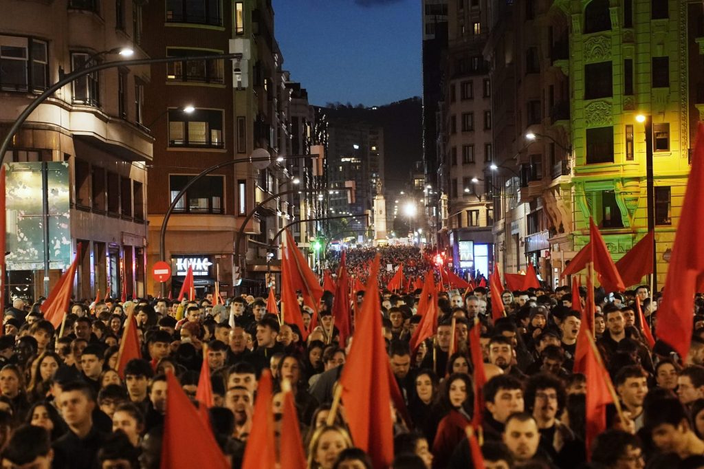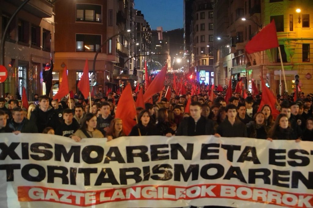 Milers de persones, convocades per Gazte Koordinadora Sozialista (GKS), es van mobilitzar el passat cap de setmana contra el feixisme i l’autoritarisme dels estats en dues manifestacions a Euskal Herria. Als carrers de Bilbo i Iruñea es van aplegar més de 10.000 persones.