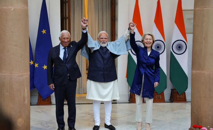 Dimarts a Nova Delhi el primer ministre de l’Índia, Narendra Modi, es va reunir amb Ursula von Der Leyen i António Costa, tots dos líders de la UE. En aquesta reunió van signar un acord de lliure comerç entre la UE i l’Índia.
